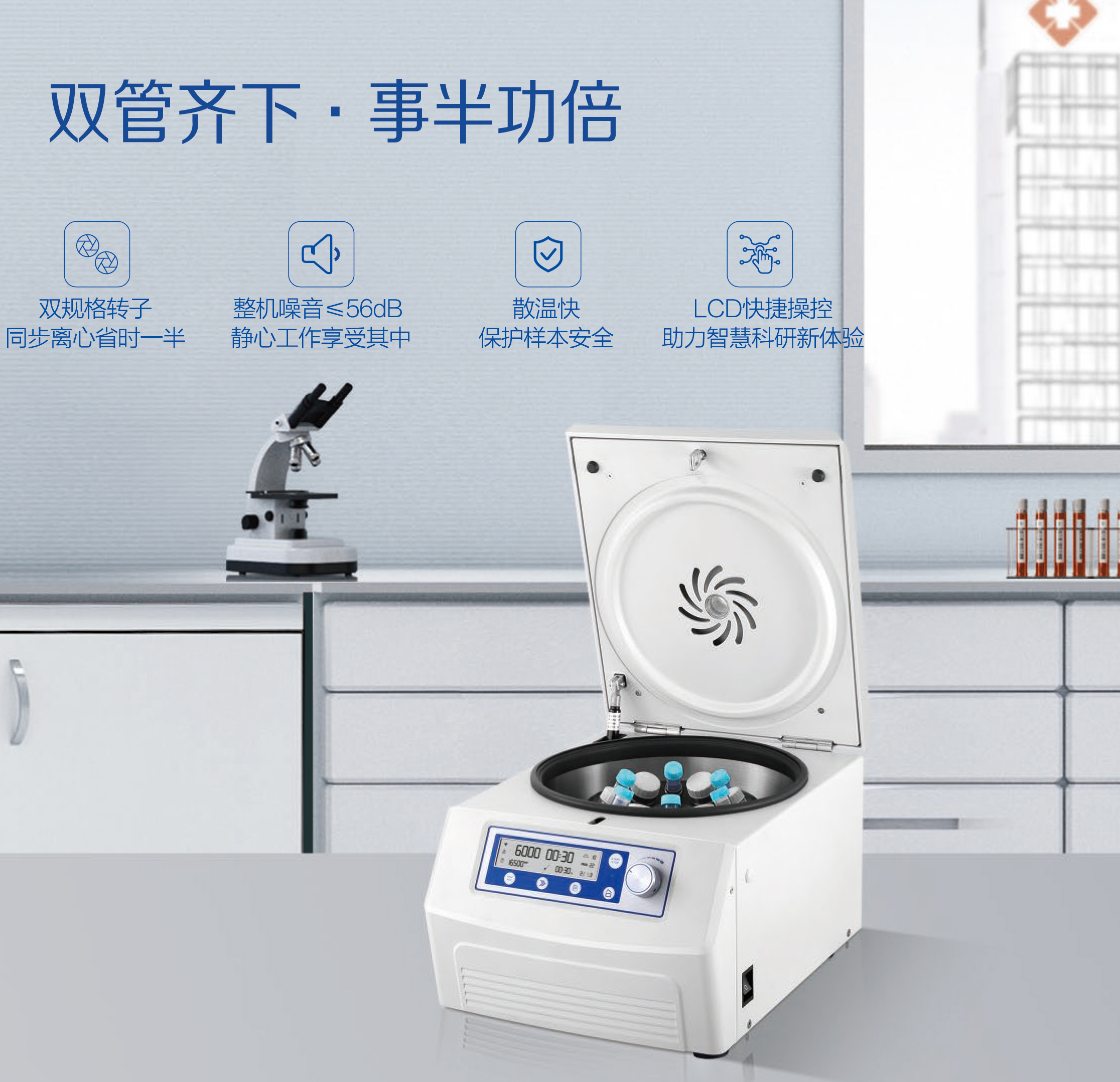 产品特点和适用范围: LX-60T100-J作为实验室常规离心机,最大容量是6*100ml,最高转速6000转,最大离心力4749 xg。最高转速运行噪音56分贝,搭配8款离心转子,兼容从0.2ml到100ml的多种离心耗材,用于样品快速分离提取,在生命科学、学术研究、临床诊断/检测、生物制药等领